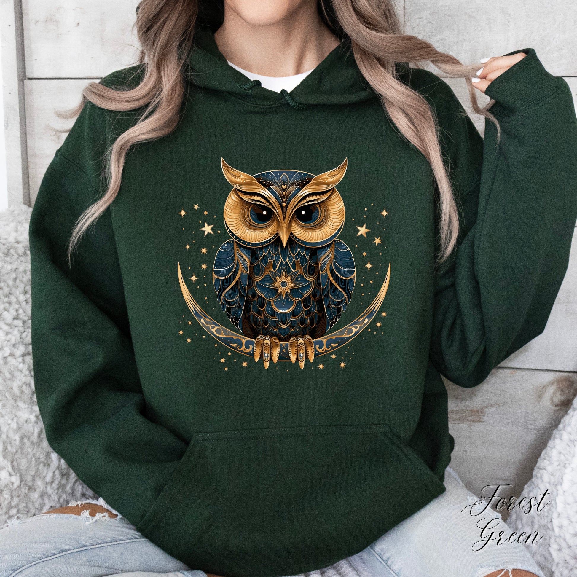 Boho Moon Owl Hoodie - Celestial Bird Hoodie - Bohemian Christmas Hoodie