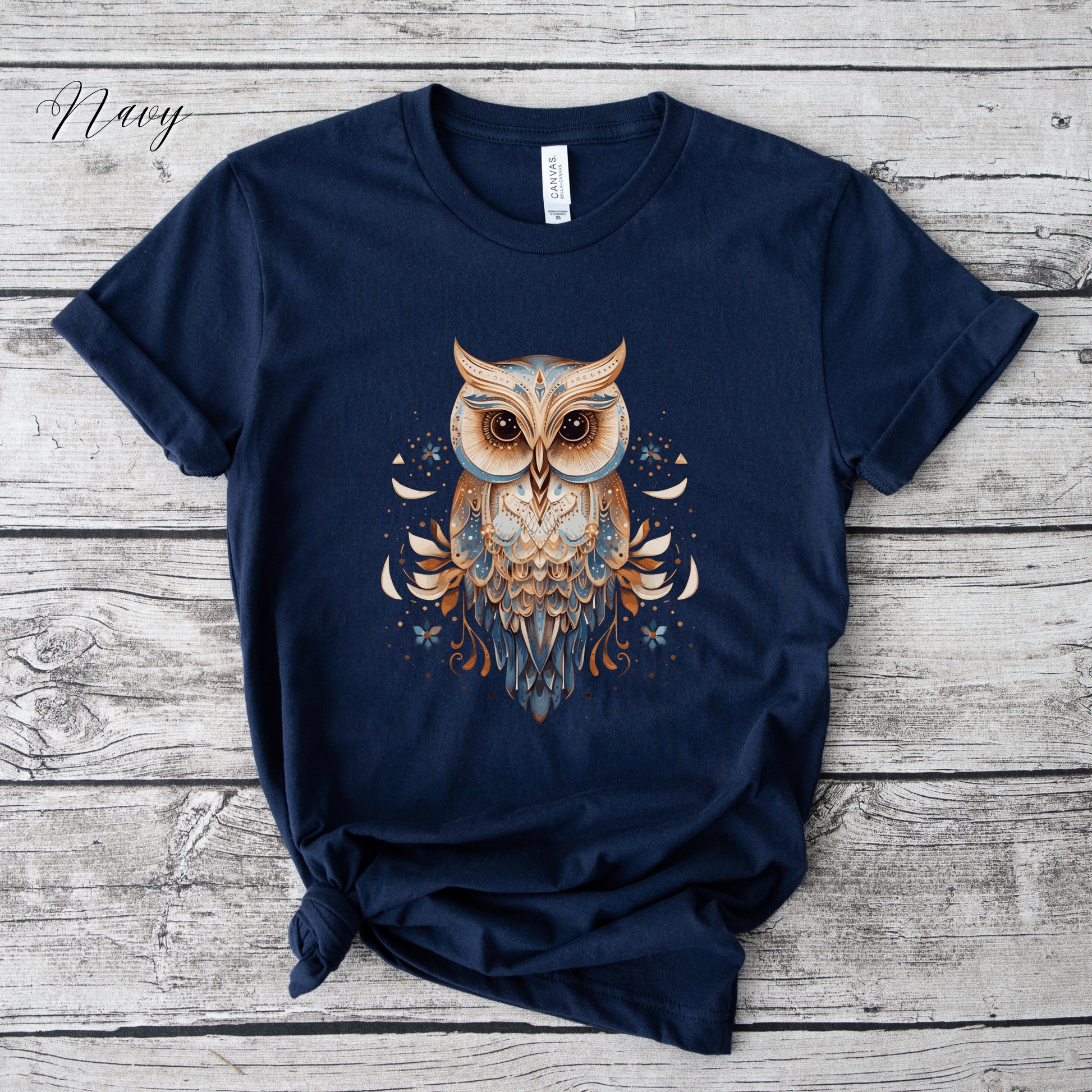 This Boho Owl Shirt brings a bohemian vintage aesthetic vibe, perfect for nature lovers and owl lovers. Great for casual wear, it adds a whimsical woodland touch to any outfit.