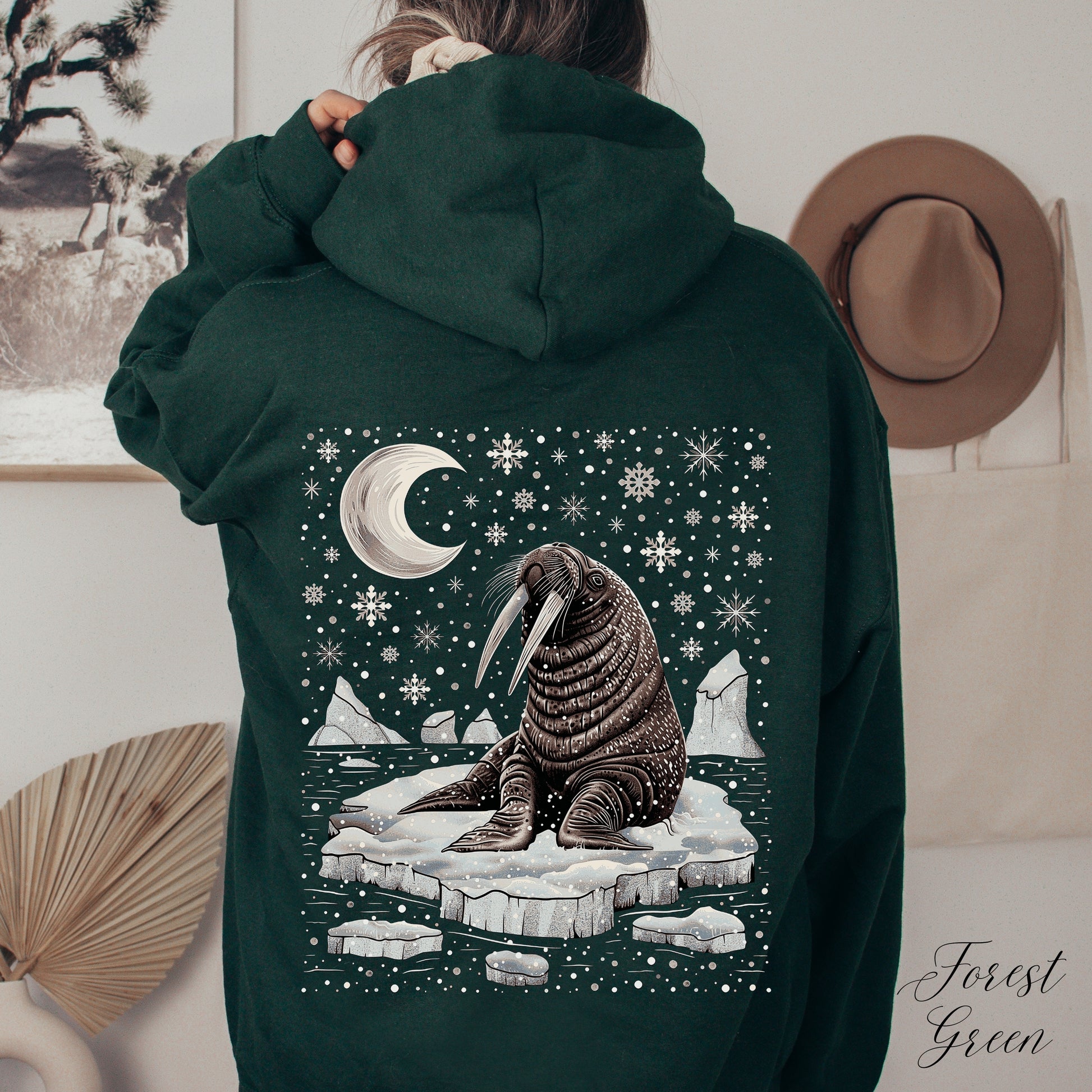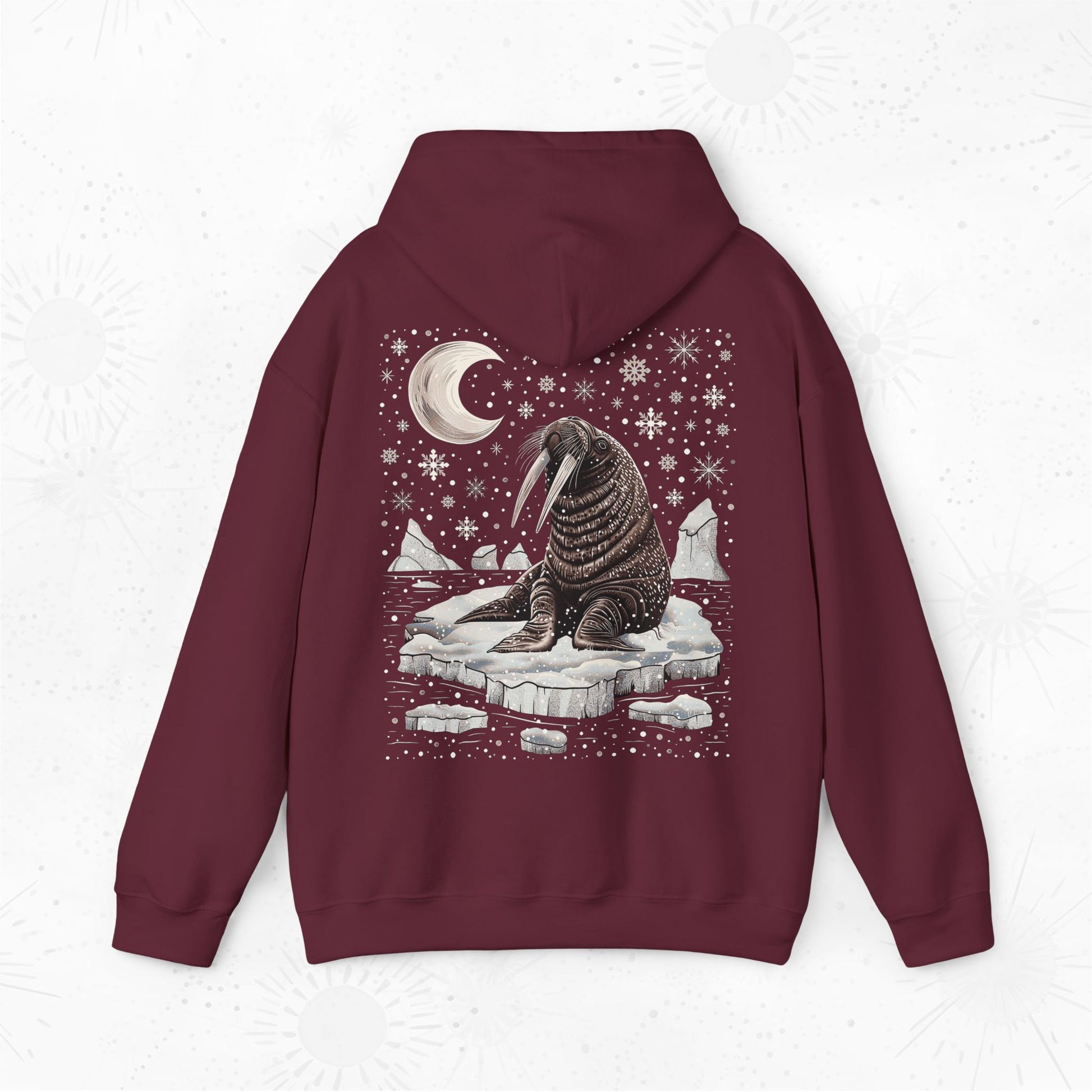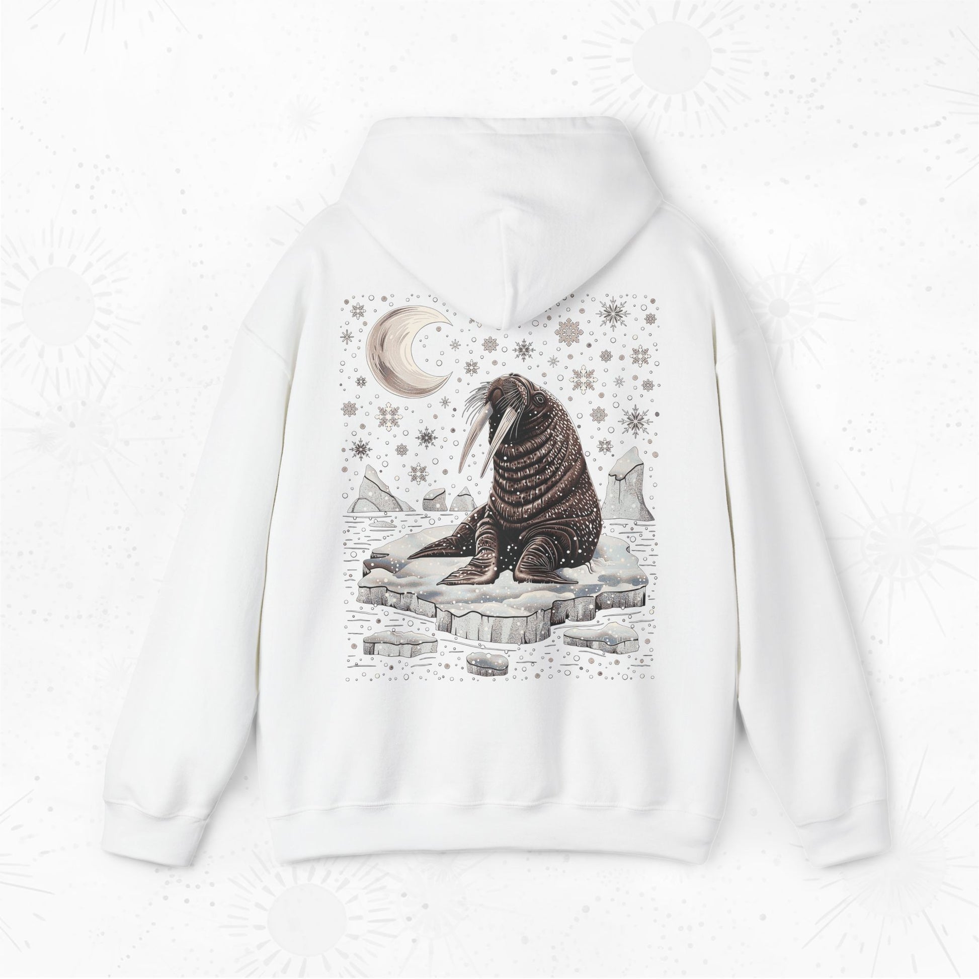 Boho Snow Moon and Walrus Hoodie - Nordic Christmas Animal Hoodie