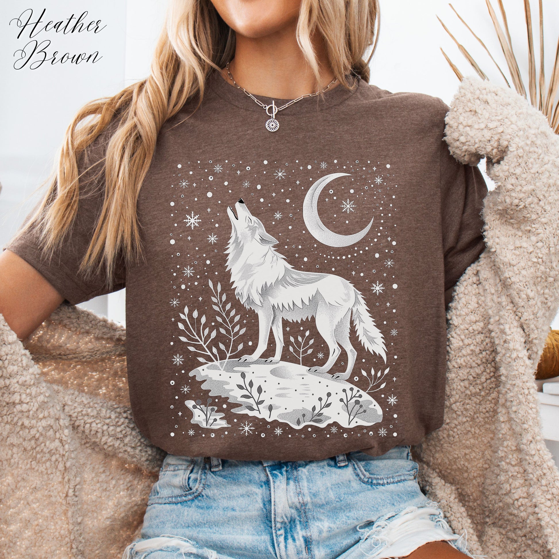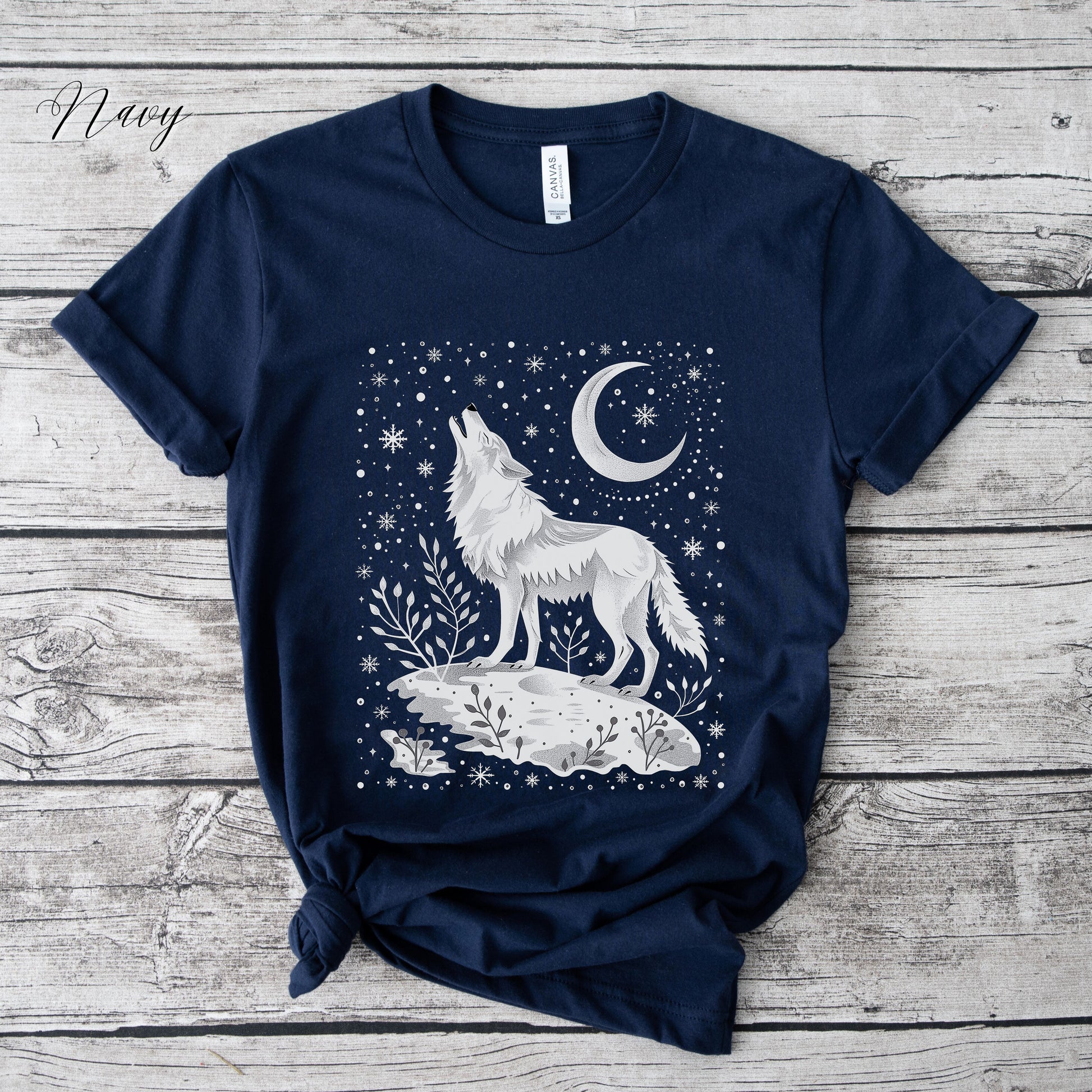 Celestial Arctic Wolf Shirt - Snowy Moon and Wolf Christmas Shirt