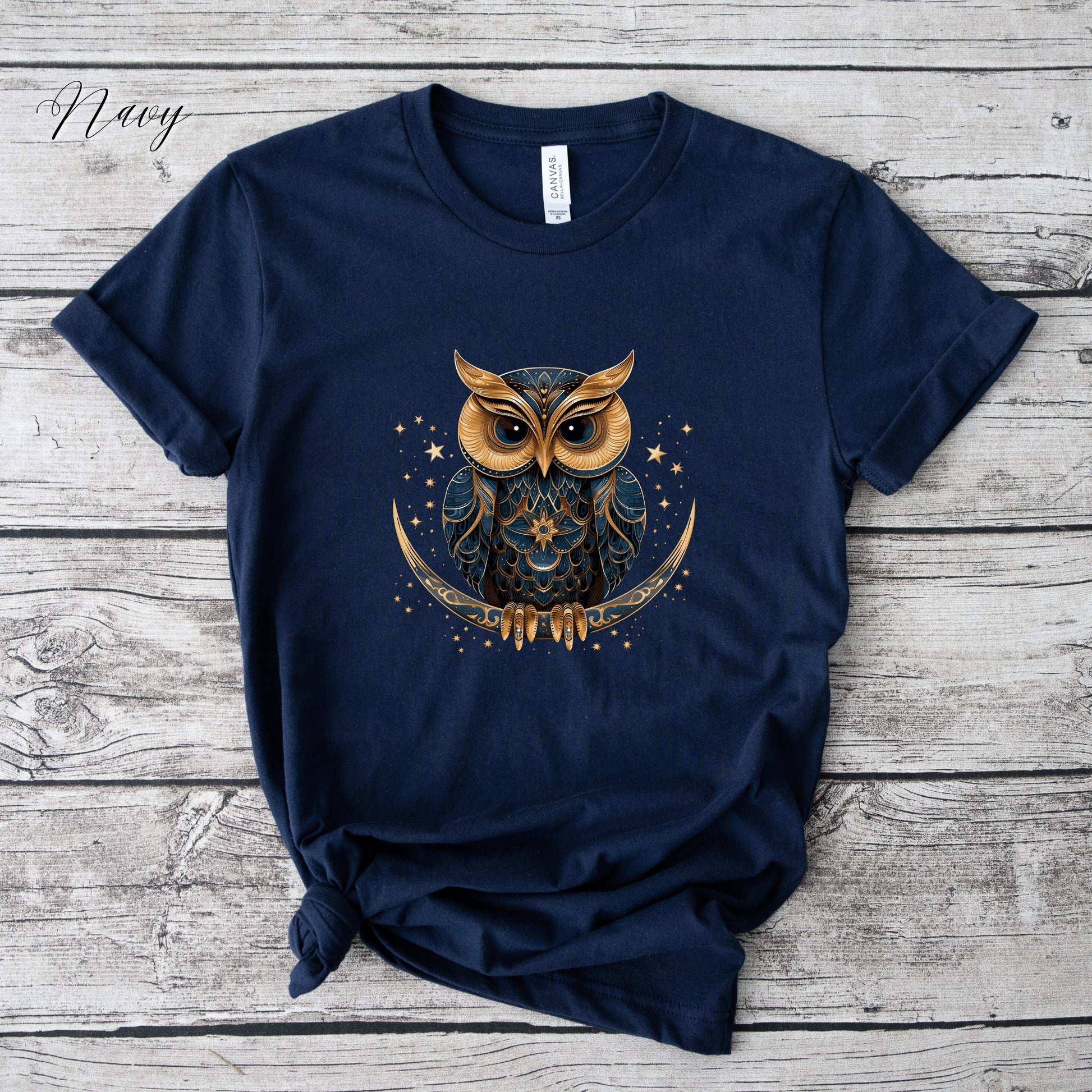 This Celestial Moon Owl Shirt features a bohemian vintage aesthetic design, giving off a mystical and whimsical vibe, perfect for those who love nature and the night sky. This shirt is great for casual wear or during Christmas holidays.