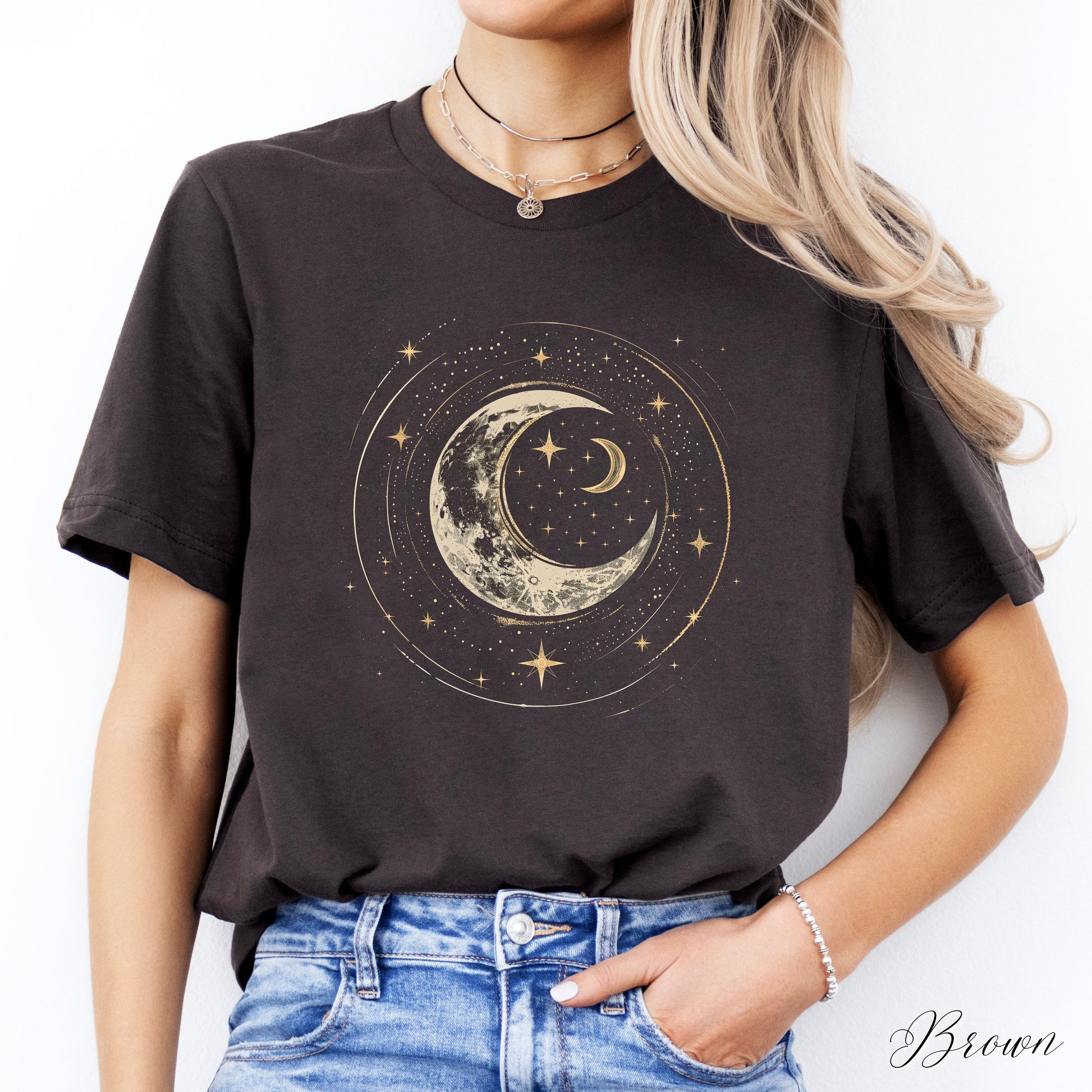 Bring a touch of lunar magic to your look with this Crescent Moon Shirt. This bohemian t-shirt makes a great gift for astronomy lovers, dreamers and stargazers.
