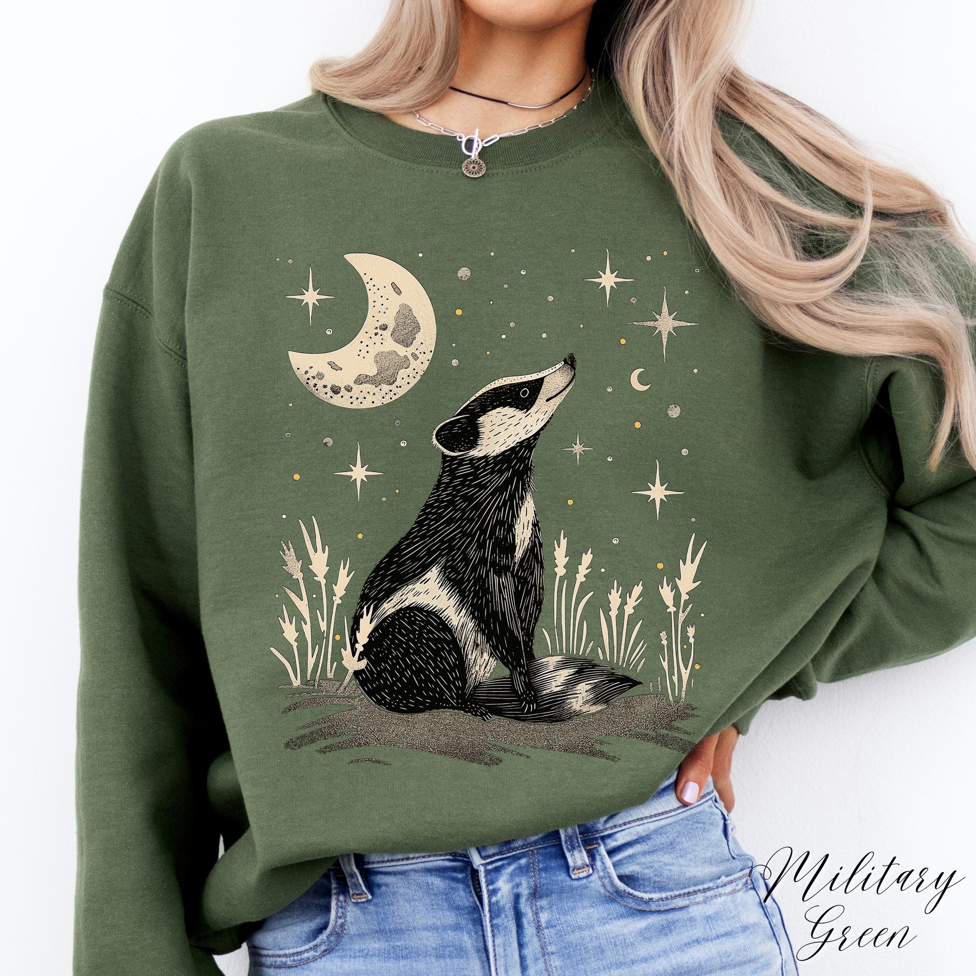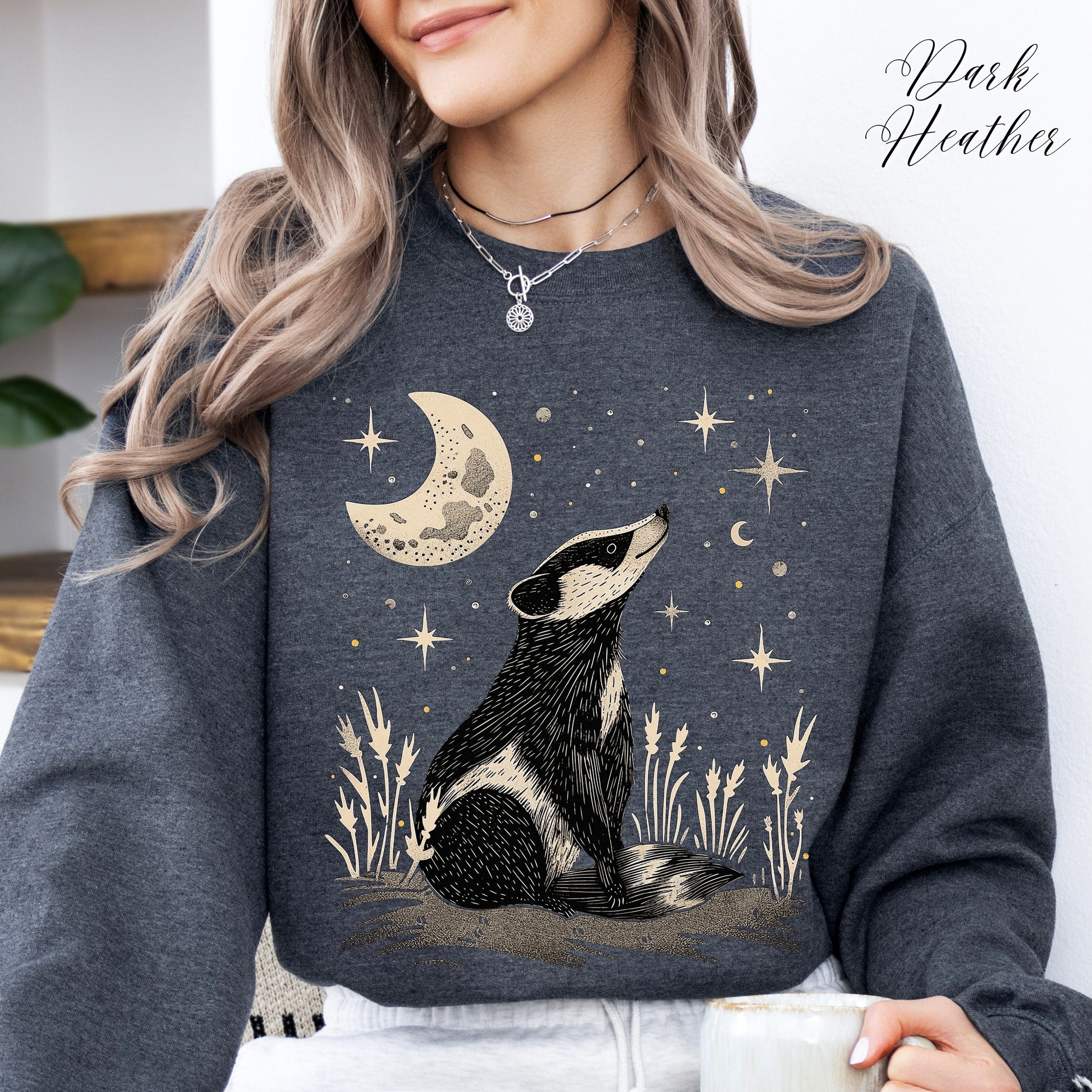 Mystic Moon and Badger Sweatshirt - Boho Woodland Animal Jumper