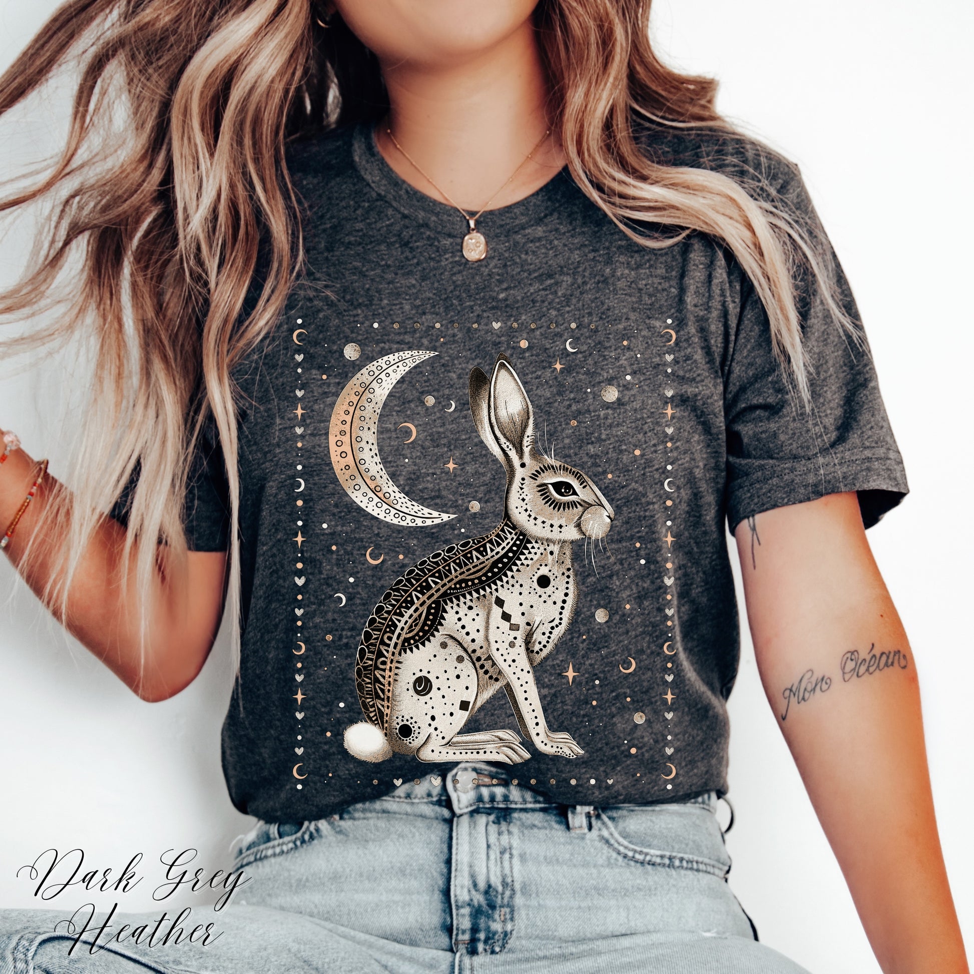 Mystic Moon Rabbit Shirt - Bohemian Animal Graphic Tee