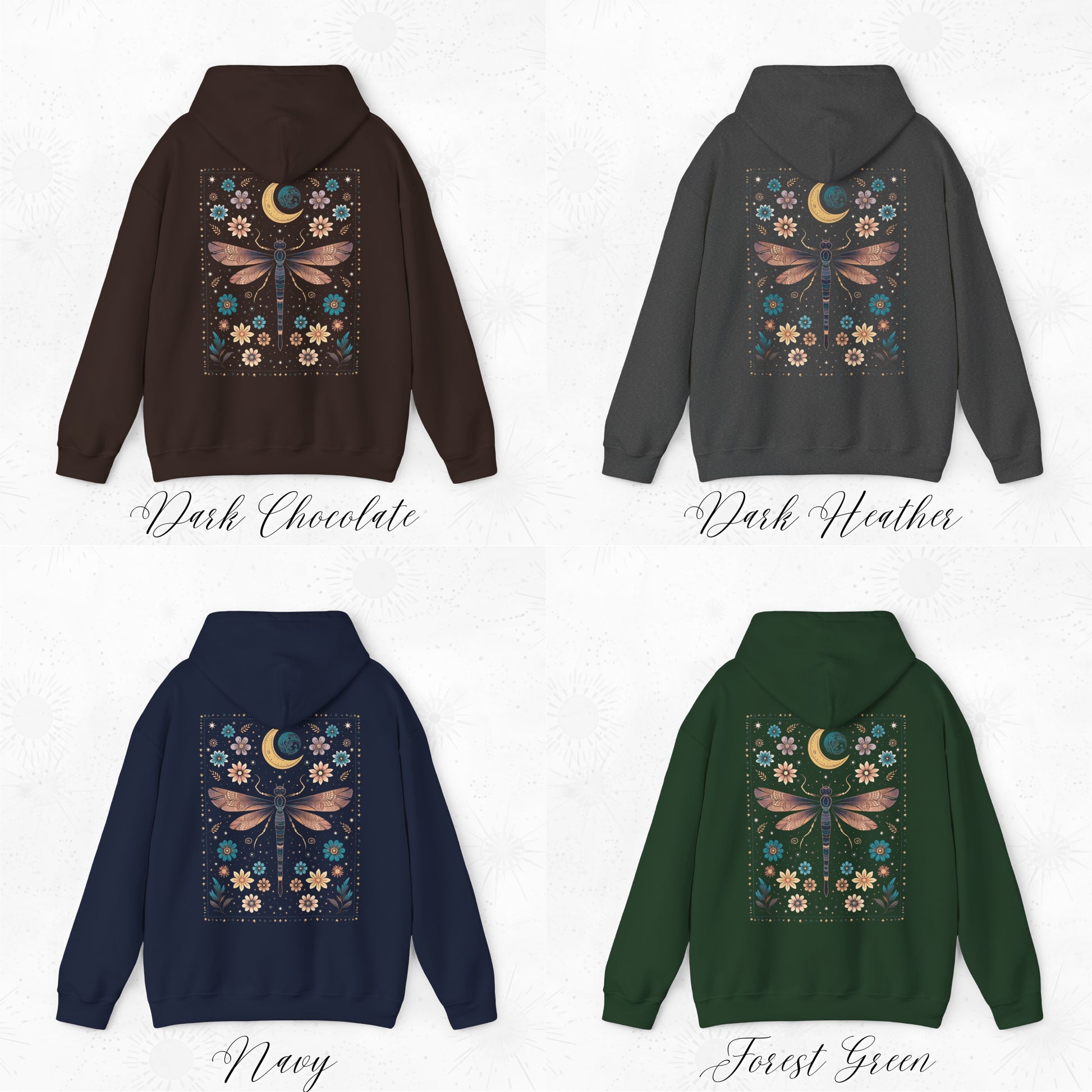 Mystical Vintage Dragonfly Hoodie - Celestial Floral Hippie and Boho Hoodie
