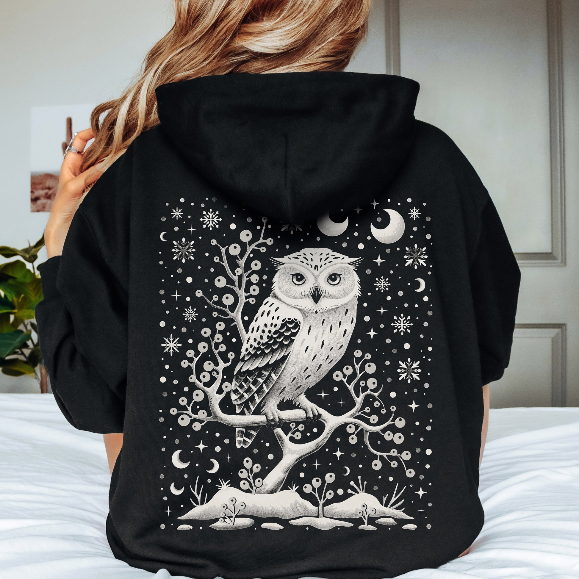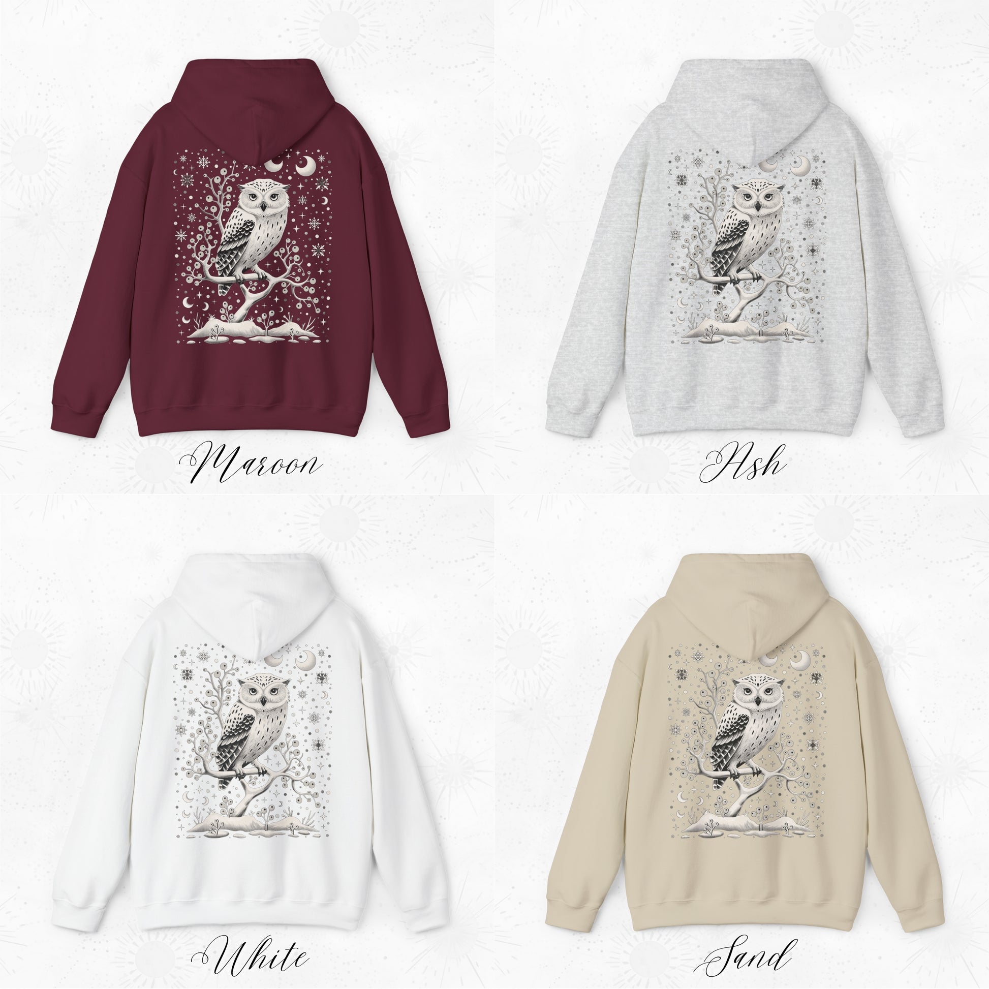 Winter Moon Owl Hoodie - Celestial Boho Christmas Hoodie